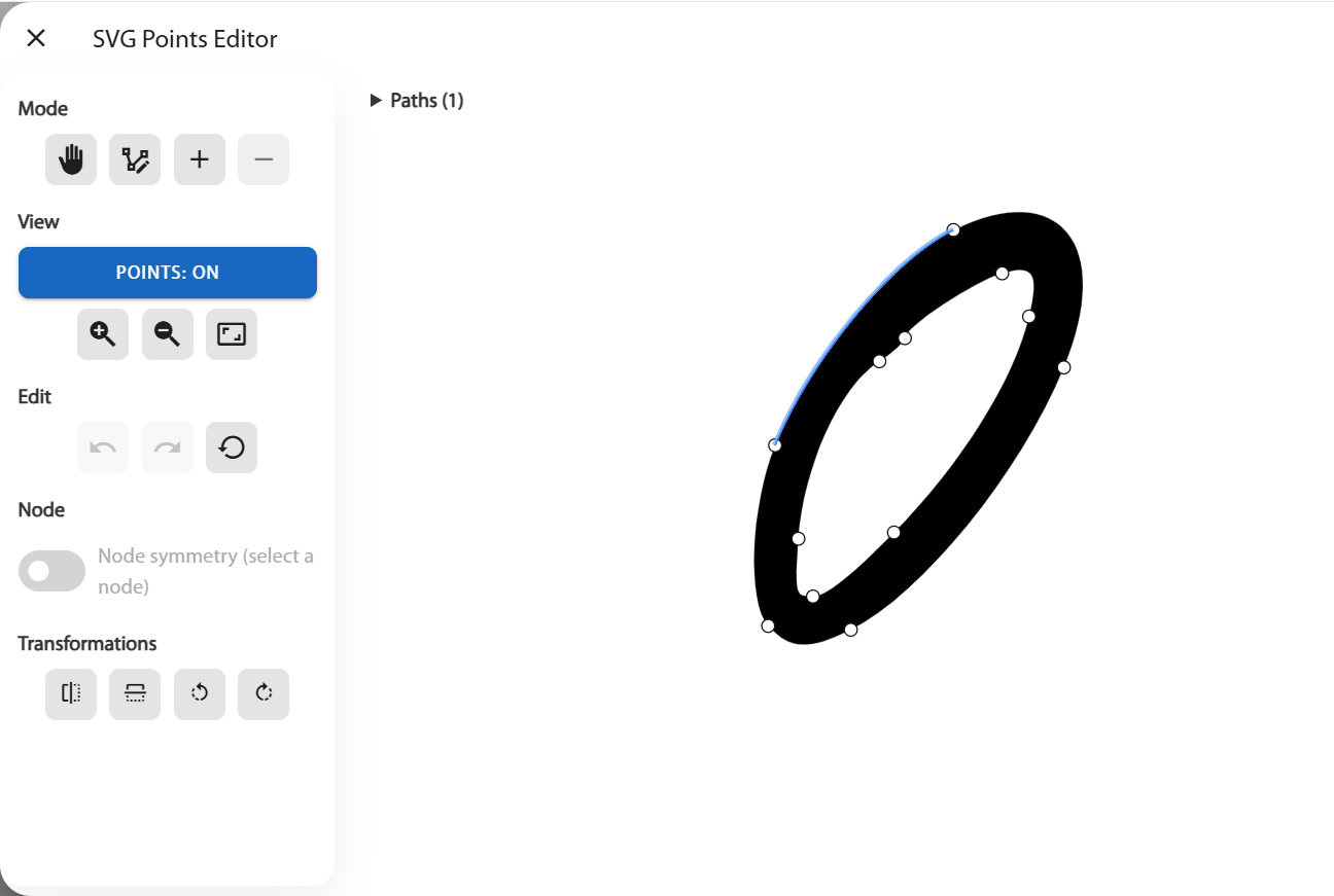 After uploading a template, you can manually edit its nodes and paths. The editor provides tools to move points, add or delete nodes, adjust symmetry, apply transformations (flip, rotate), as well as zoom and preview details. All changes are immediately visible on the canvas and are saved in the final SVG file. This is especially useful if you need to refine letter shapes, adjust smoothing, or make elements cleaner before using them in a font or project.